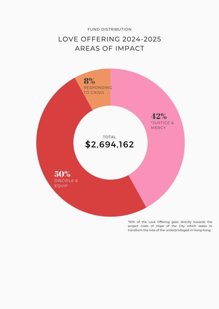 Thank you for being a blessing to so many in Hong Kong and around the world. Your gift was instrumental in sharing the love of Jesus Christ with others and directly contributed to the Great Commission of the Church to make disciples of all nations.